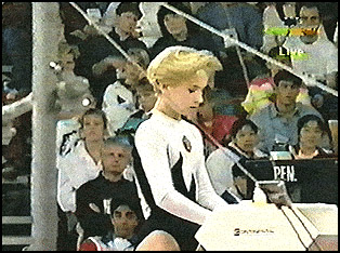 on the balance beam.
