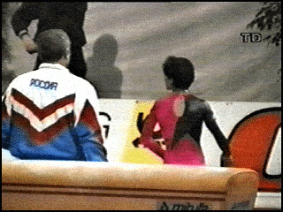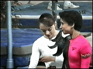 vigorous endeavor and chases her all around the gym.