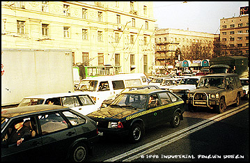 Elena Dolgopolova. Both get into an orange Lada at the stadium