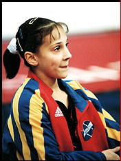 Fie lowering Elena Produnova's and Svetlana Khorkina's vault