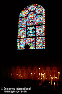 glass inside a cathedral in the Latin Quarter.